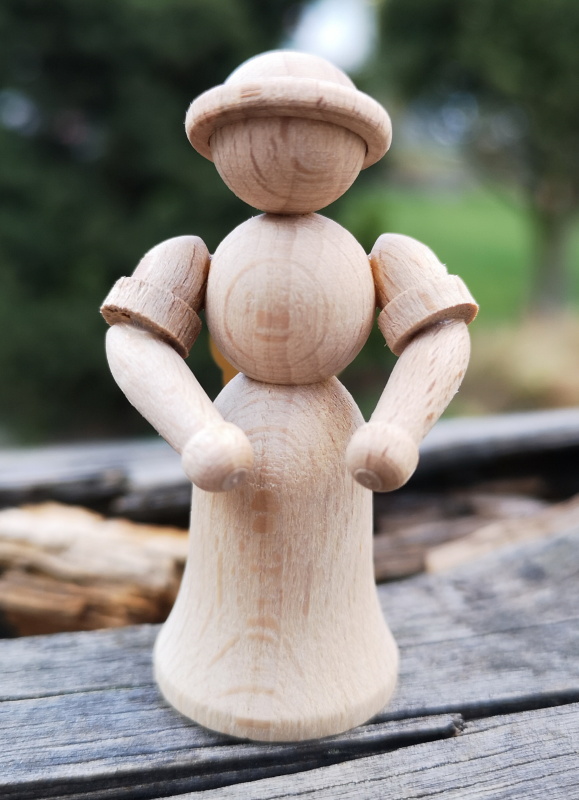 Dřevěná ozdoba k zavěšení. Ručně kompletovaná figurka anděla je z bukového dřeva. Bez povrchové úpravy.