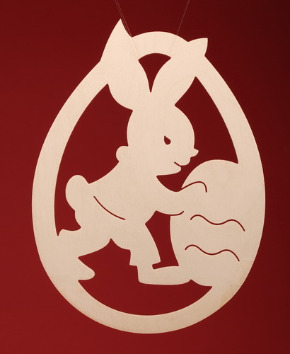 Velká velikonoční dřevěná ozdoba k zavěšení. Bez povrchové úpravy, vhodné k dalšímu dozdobení. Po nalakování je možné i venkovní použití.